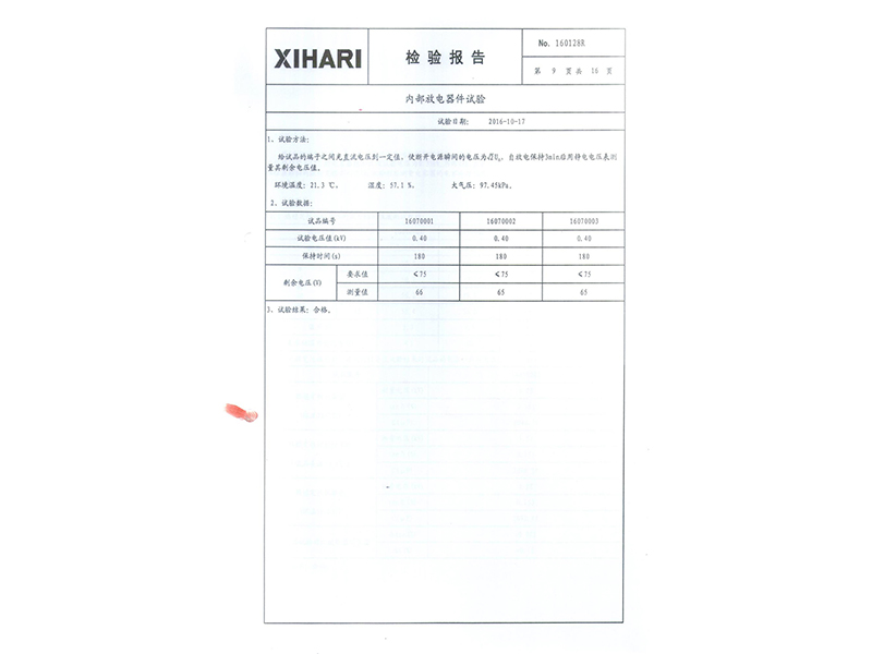 報告 礦熱爐專用干式自愈式電容器型式試驗報告